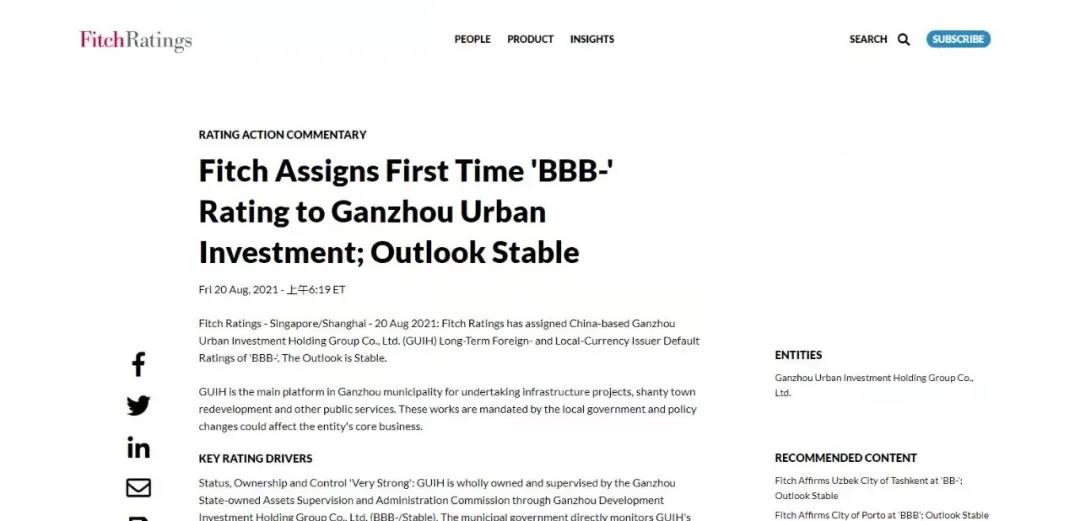 2021年,積極推進(jìn)境外評(píng)級(jí),并成功于8月20日獲惠譽(yù)國(guó)際信用評(píng)級(jí)機(jī)構(gòu)授予BBB-國(guó)際投資級(jí)評(píng)級(jí),為境外債發(fā)行奠定了良好基礎(chǔ)。10月12日,在香港聯(lián)交所成功發(fā)行首單境外高級(jí)無(wú)抵押信用債券,金額1.5億美元,票面利率3.0%,期限3年,創(chuàng)江西省內(nèi)自身信用評(píng)級(jí)發(fā)行票面利率最低,成為贛州市首家發(fā)行境外債券的市級(jí)國(guó)有平臺(tái)企業(yè)。集團(tuán)發(fā)行境外債工作被列為全省、全市典型案例之一。